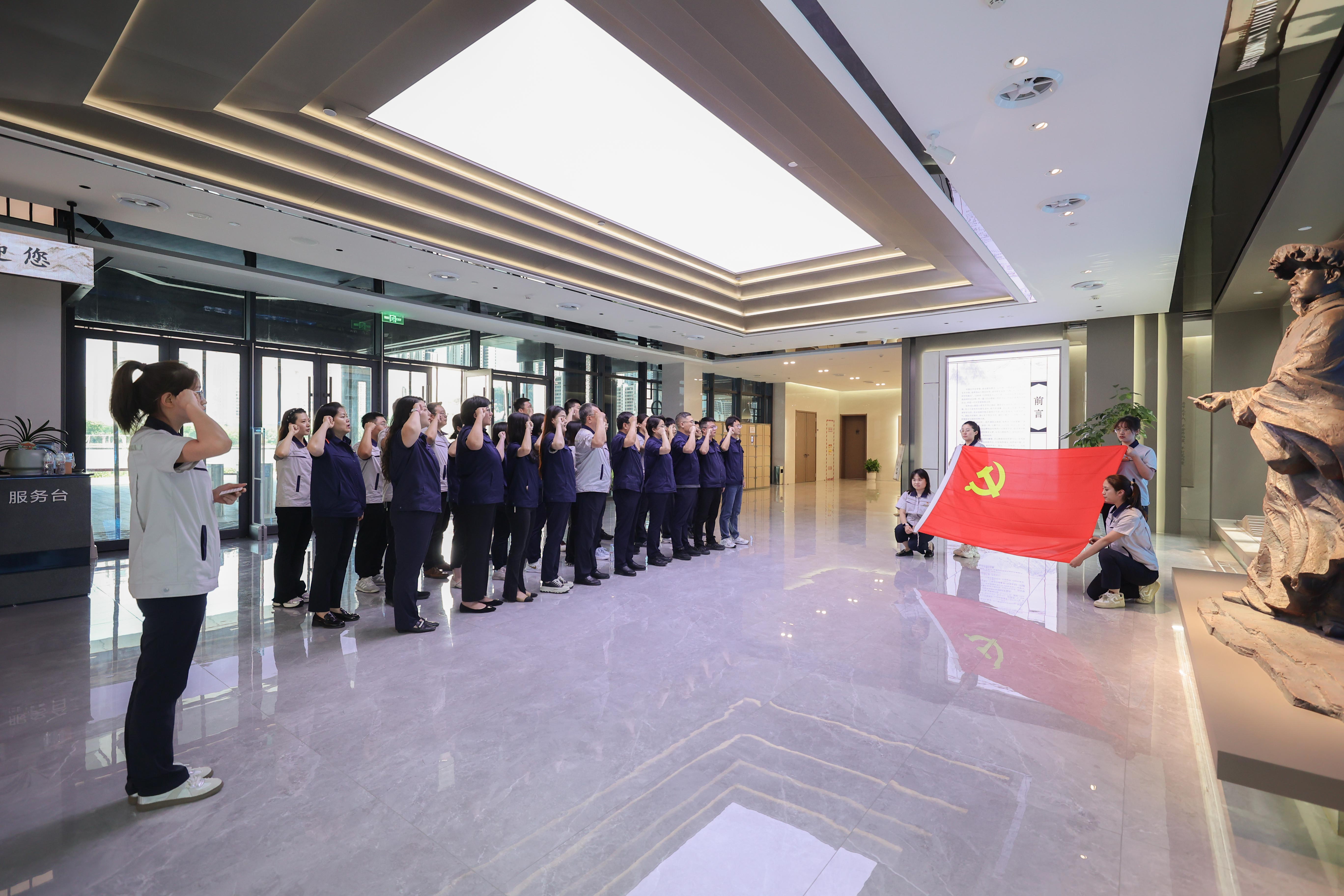 全体党员面向党旗,重温入党誓词,铮铮誓言彰显了能源人坚守初心、勇担使命的决心。既是对中国共产党成立104周年的深情献礼,也是对廉洁从业的郑重承诺。党外知识分子代表也深受触动,表示要以党为师,严守职业操守,积极建言献策,勇于开拓创新,为集团高质量发展贡献力量。